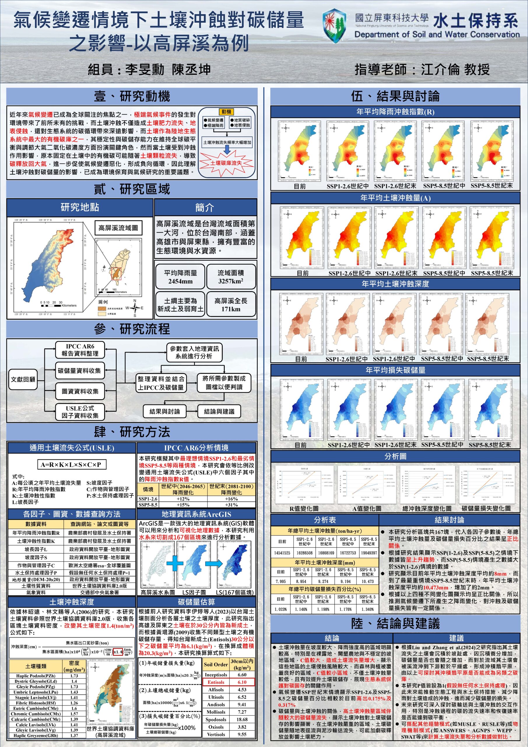 [113]李旻勳、陳丞坤【氣候變遷情境下土壤沖蝕對碳儲量之影響 - 以高屏溪為例】