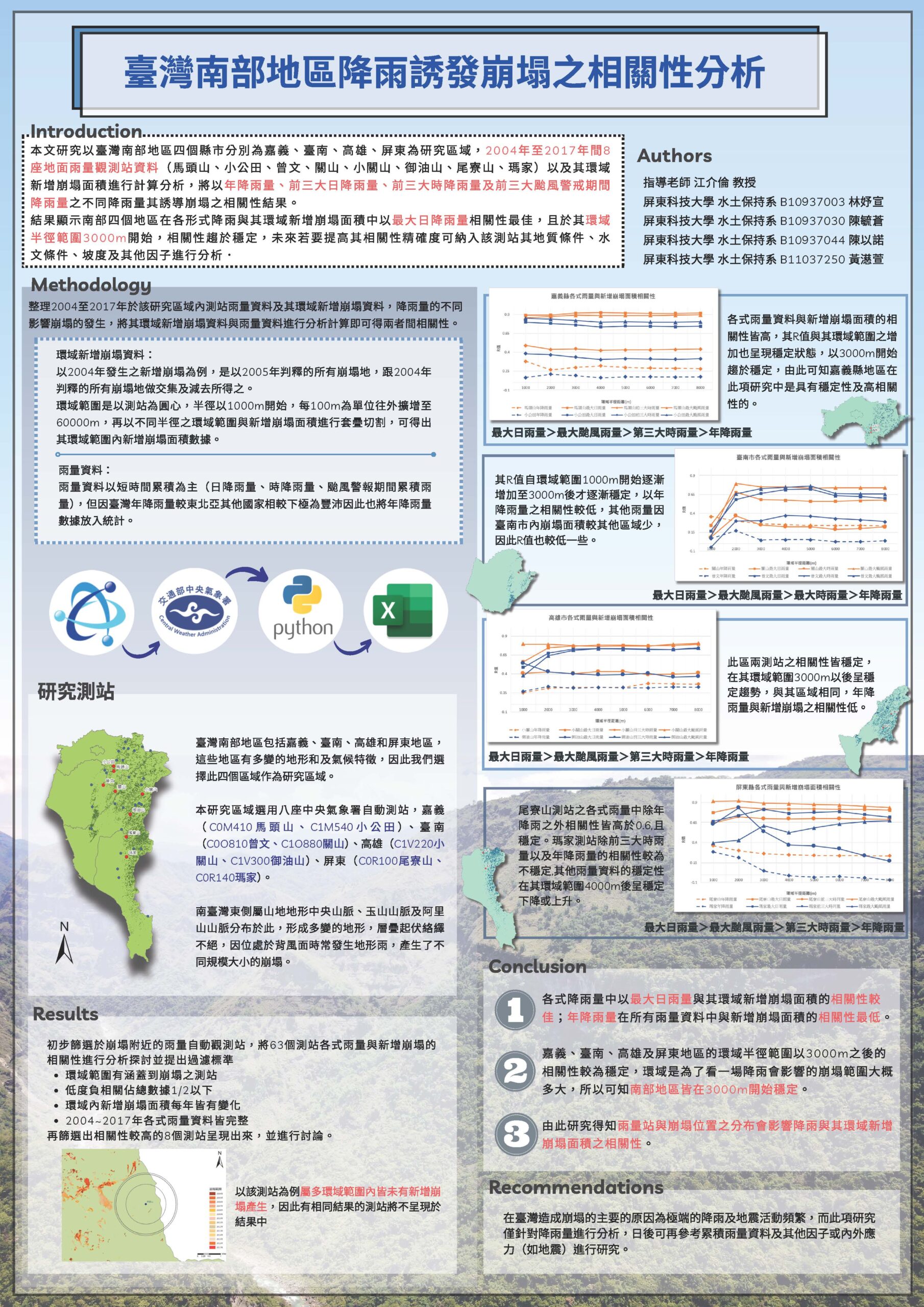 [112]林妤宣、陳毓蒼、陳以諾、黃濨萱【臺灣南部地區降雨誘發崩塌之相關性分析】